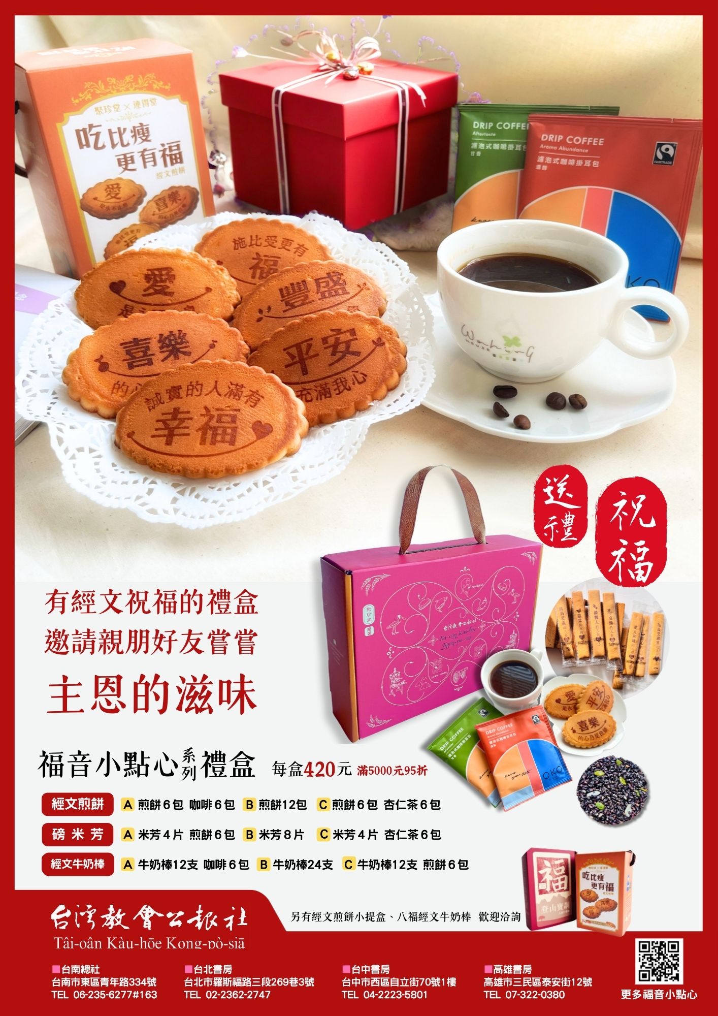 - A款:經文煎餅6包+生態綠濾掛咖啡6包