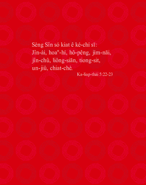 聖靈的果子就是仁愛、喜樂、和平、忍耐、恩慈、良善、信實、溫柔、節制。